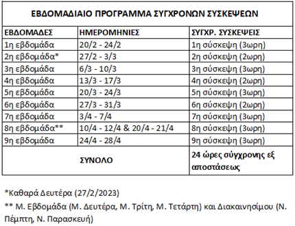 Η επιμορφωτική περίοδος αρχίζει στις 20-02-2023 και ολοκληρώνεται στις 12-05-2023.